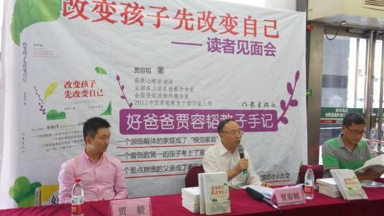 北京2013年9月18日電 /美通社/ -- 2013年9月14日下午1時30分,由作家出版社主辦,貴州網(wǎng)支持的《改變孩子先改變自己》讀者見面暨簽售會在北京西單圖書大廈一樓隆重舉行。會上,此書的責(zé)任編輯鄭建華老師首先發(fā)言。隨后,作者賈容韜及賈語凡談及此書的創(chuàng)作歷程和家教感悟。眾多家長朋友專程從各地趕來,分享了《改變孩子先改變自己》帶給自己和孩子的巨大幫助。