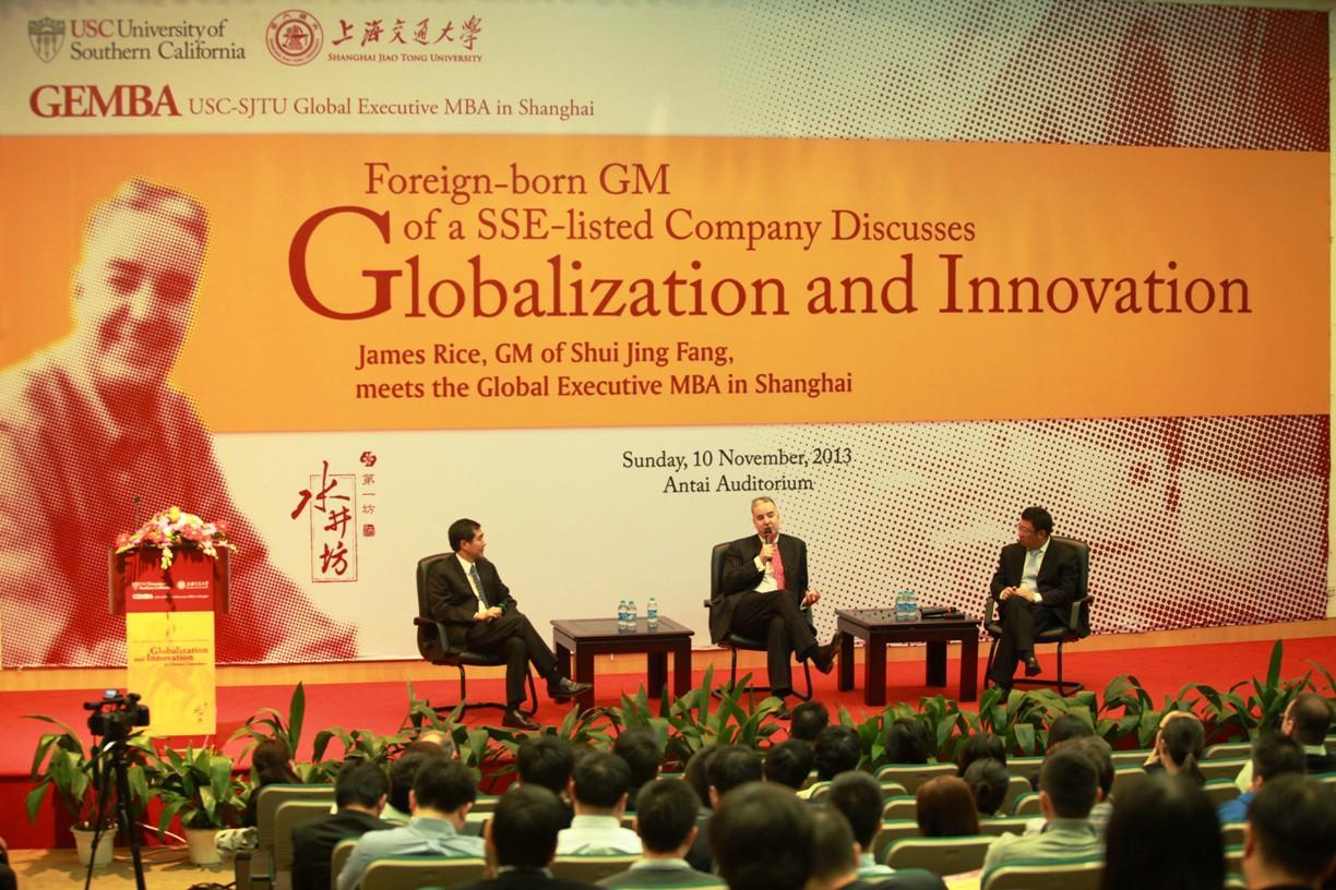 上海交通大學(xué)—美國南加州大學(xué)全球EMBA項目(GEMBA),自2003年獲得國家教育部批準(zhǔn)以來,致力于為中國市場培養(yǎng)具有全球領(lǐng)導(dǎo)力的高級管理精英。 至今已有27個國家和地區(qū)的高級管理人員參加過項目課程,GEMBA是名符其實的全球化EMBA項目。此次Jim Rice大米的演講活動是GEMBA項目舉辦的“中國企業(yè):全球化與創(chuàng)新”系列演講的活動之一,此前還曾邀請到一號店運營總監(jiān)Jonathan Wang王嘉豪先生作為演講嘉賓,此類活動通過國際化企業(yè)高層與學(xué)員、校友的交流,帶來不同企業(yè)管理經(jīng)驗的分享與碰撞,為 GEMBA 項目培養(yǎng)更多未來外資、合資企業(yè)的領(lǐng)導(dǎo)者提供良好的平臺與視野。